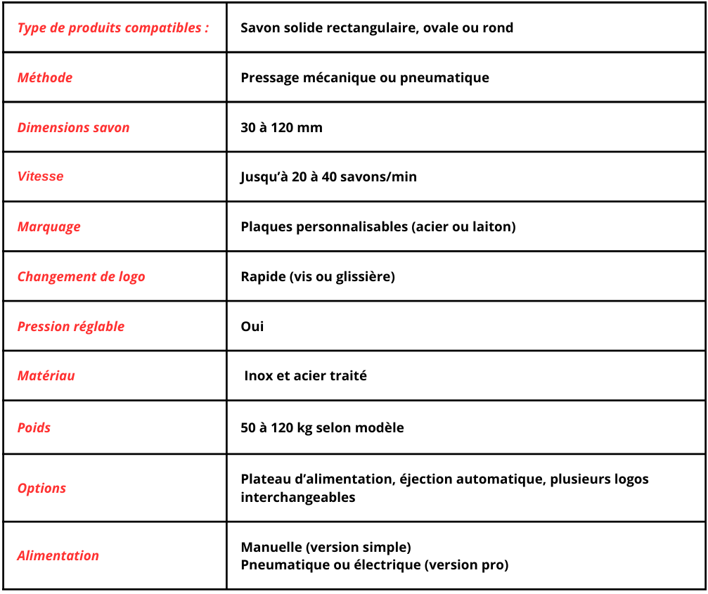Machine qui imprime un logo ou nom d’entreprise sur chaque pain de savon solide grâce à un moule gravé
