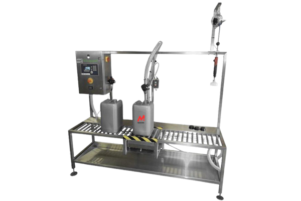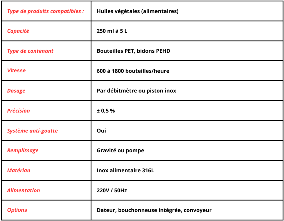 Machine automatique qui remplit des bouteilles ou des bidons avec des huiles alimentaires comme l’huile d’olive, de tournesol ou de colza