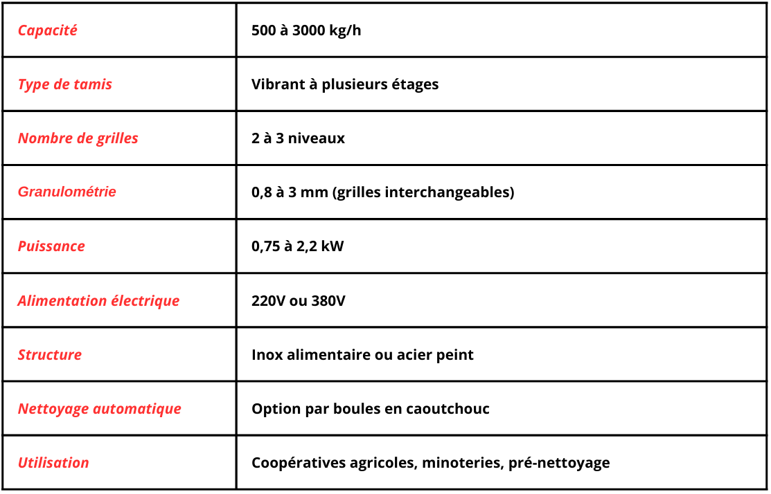 Machine utilisée pour le tri et le nettoyage des grains de blé, en éliminant les impuretés, les poussières et les particules de taille différente avant transformation